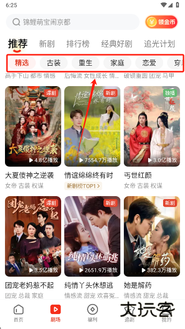 2、从分类中选择短剧类型可以快速找到你喜欢的短剧。