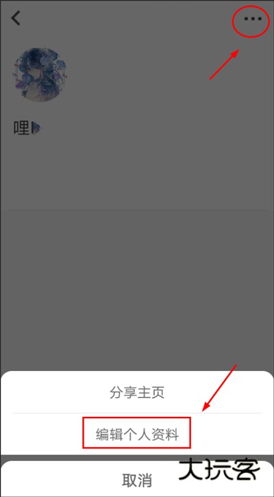 2、在【个人主页】页面,点击右上方【…】,选择【编辑个人资料】