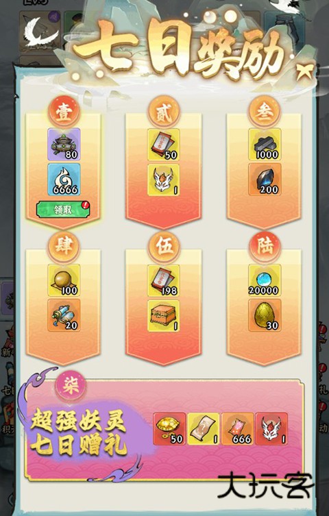 1、七日登录奖励,玩家连续登录七天,每天都有丰富礼包资源奖励。