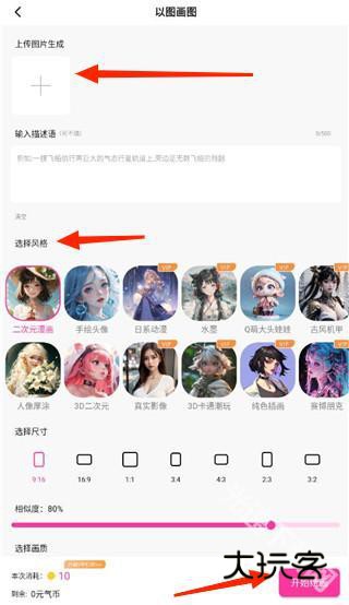 3、使用尖端的人工智能模型生成作品。可以选择多种画风,生成自己的作品。