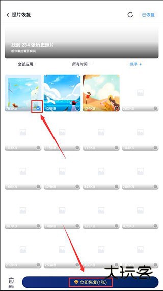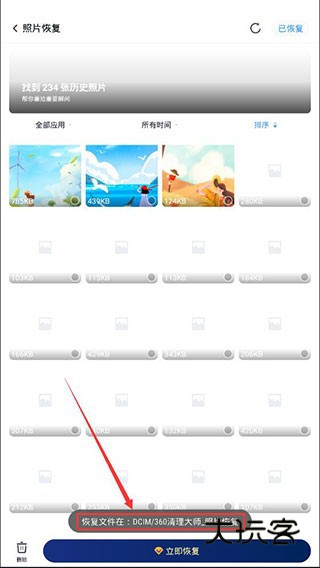 2、点击照片恢复之后,你就可以看到这些历史照片,然后选中你要恢复的照片,再点击下方的立即恢复即可。