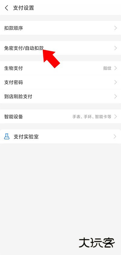 2、接着点击【支付设置】-【免密支付/自动扣款】选项
