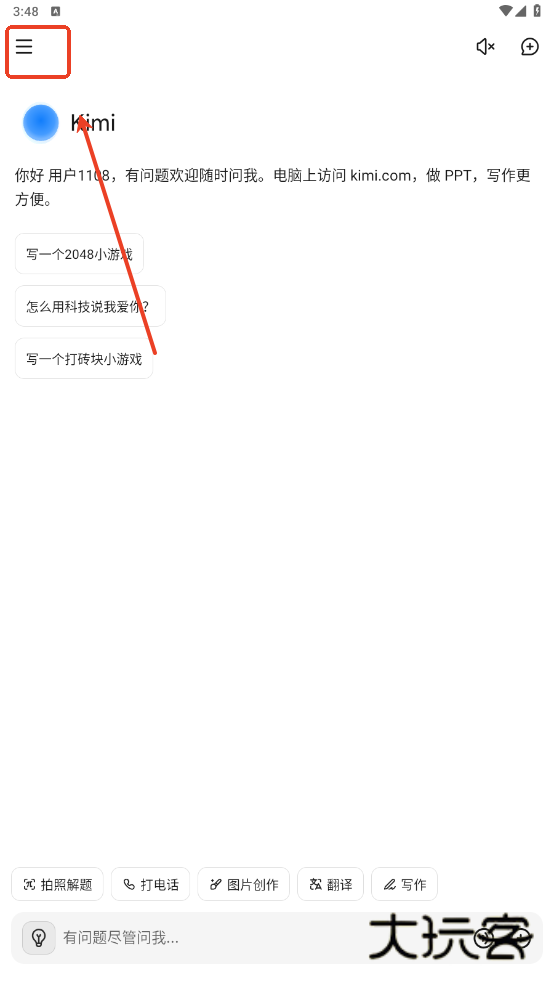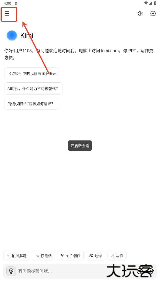 1、首先我们需要点击打开手机上的kimi软件。
