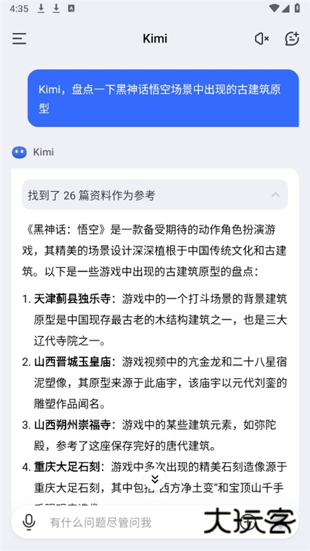 kimi智能助手是一款ai对话型问答工具,它接入了许多的大模型,能够更加准确的分析和为用户解答问题,而且支持多种输入的方式,用户根据自己的需求选择使用,而且它应用的范围非常的广泛,能够帮助用户轻松提升各种办事效率,同时软件还有严格的加密机制用户不用担心泄露隐私的问题哦!