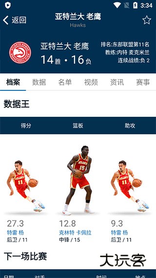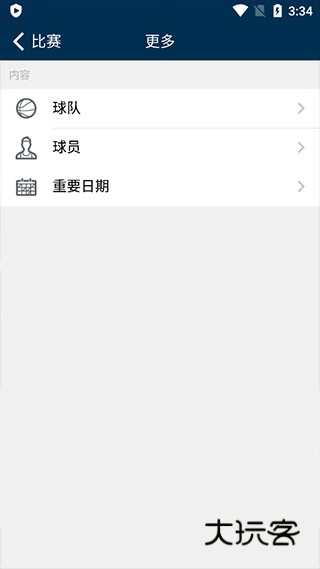 2、更多中即可查看球队,球员的数据,以及最近的重要日期;