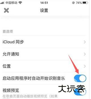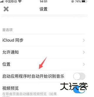 3、打开后找到启动应用程序时自动开始识别音乐