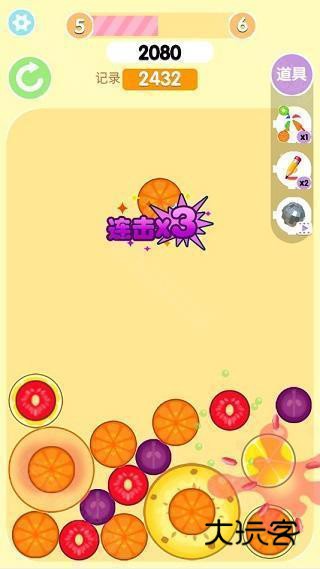 1、玩家只需要用手指点击屏幕上的水果,将相同大小的水果进行合成即可。