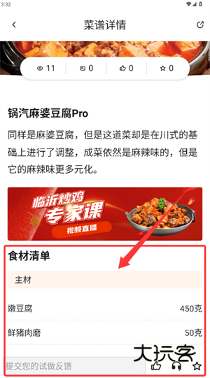 3、选定所需菜谱后进入详情界面,可浏览详细的食材配料与制作步骤。