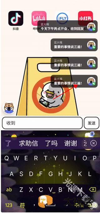 打开软件设置好后,点击气泡即可回复消息,上划就是清除该条气泡消息