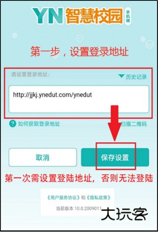 首次登录YN智慧校园 APP时,需要先设置登录地址,请在设置登录地址处,采用手动输入或扫描下方的二维码的方式添加登录地址,再进行登录;