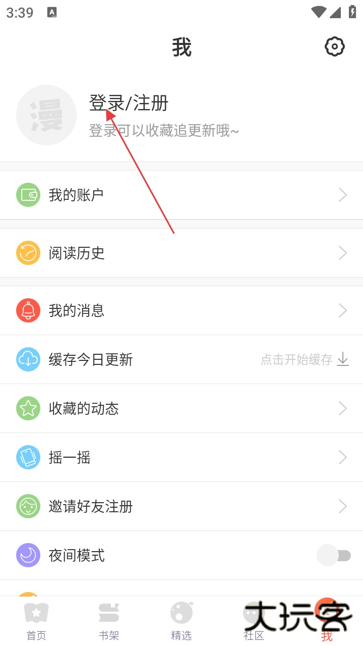 1、在漫漫漫画首页,可浏览推荐漫画,点击右下角【我】,进入个人相关页面。