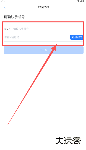 2、输入手机号, 点击输入所接收到的验证码,完成密码重置操作。