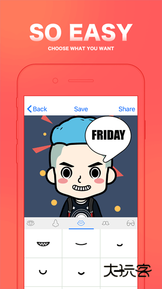 2、除了创建虚拟形象,Myotee Face Cute还提供非常强大的功能,允许您创建与自己相似的卡通人物。