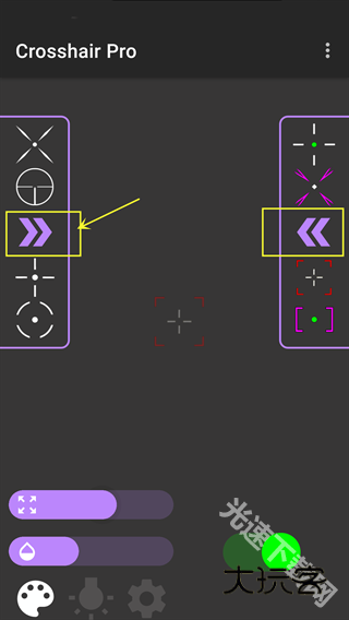 3、当然软件内的准星类型远不止展示的这些,可以点击下图所示的箭头按钮查看更多的准星类型。