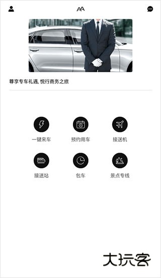 1、首先打开aa出行app,点击预约用车;