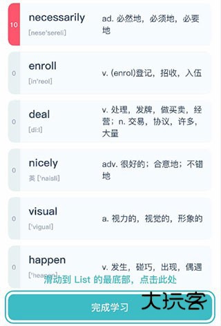 每完成一个List的学习,可以点击List底部的“完成学习”按钮,如下图所示,完成打卡记录。