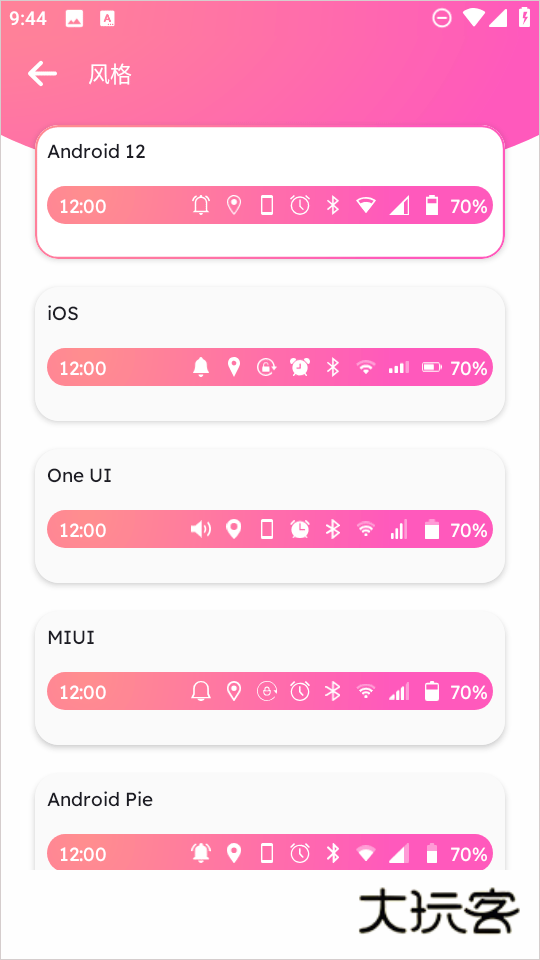 5、然后自定义选择状态栏的风格,提供了多种选择。