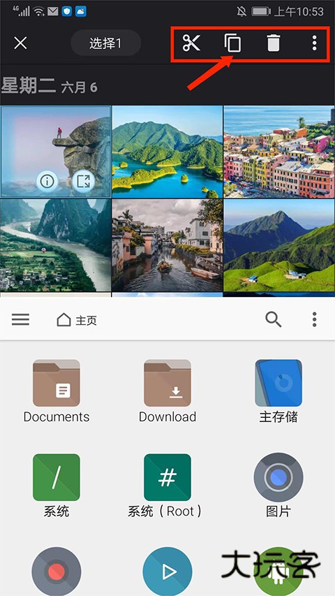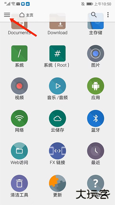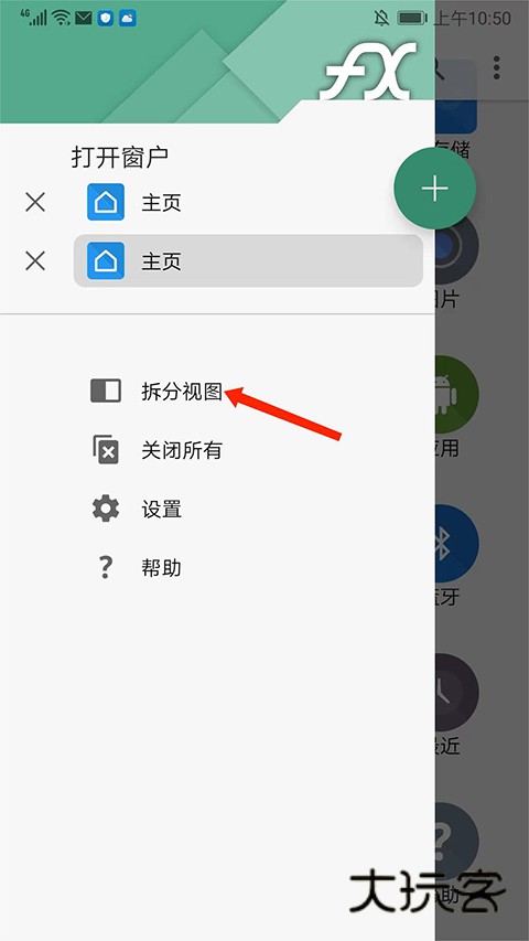 4、接下来教大家使用拆分视图来快速地进行文件的复制粘贴和管理的方法,回到应用主界面,选择左上角【三条杠】图标,