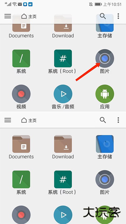 6、可看到已经开启多窗口的拆分视图界面了,支持同时浏览不同路径的文件,以及实现跨路径文件的复制粘贴,我们点击上方窗口的【图片】选项,