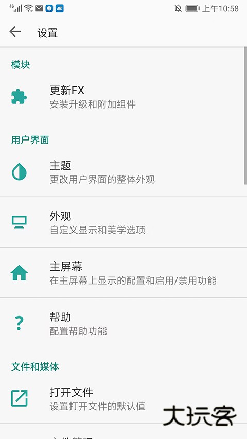 11、在设置界面,还可以进行模块、界面、网络、工具等栏目的设置,以上就是fx文件管理器的使用方法了。