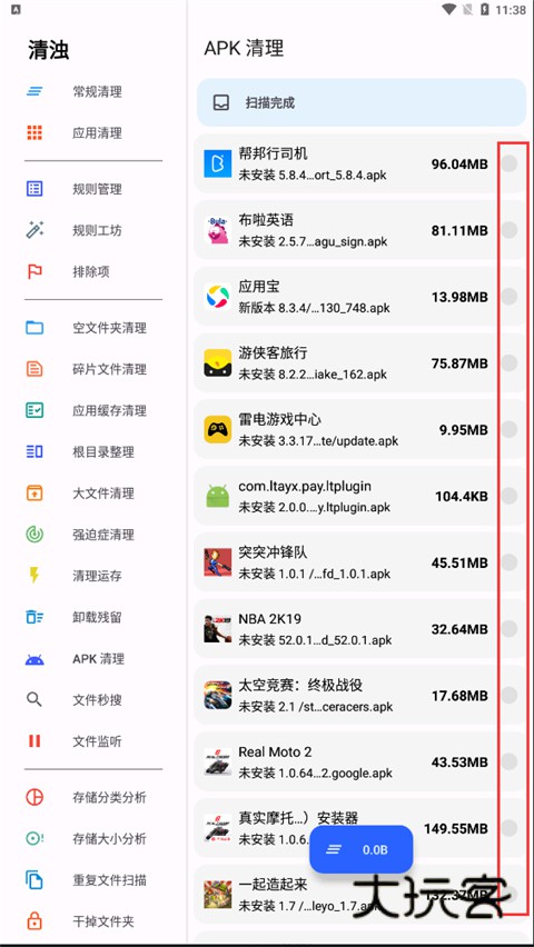 3.APK清理:查找并删除手机上未删除的APK安装包,避免占用空间。