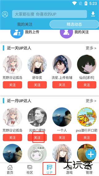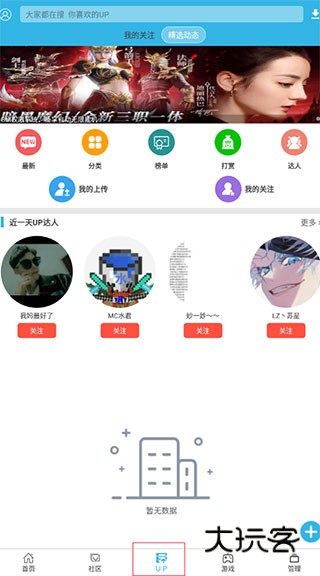3、up模块,该软件不仅只有游戏资源可以利用,你还可以在这里开展营销,成为新一代的up大神。