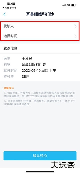 6、填写好就诊人和时间,点击【确认预约即可】。