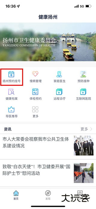 1、打开app,登录账号,点击【扬州预约挂号】。
