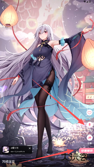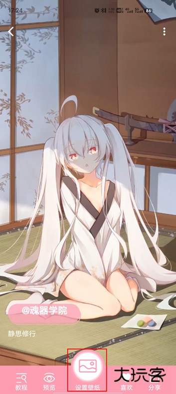 3、之后,点击设置壁纸,它会根据你的设备属性,自动添加到锁屏壁纸画面显示上,如果想要分享给其他用户使用,可点击下载下方的分享选项。