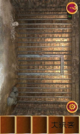 1:我们被关在一个地下通道中,首先收集地上的3个木盒,一个瓶子和左边墙上的火把。