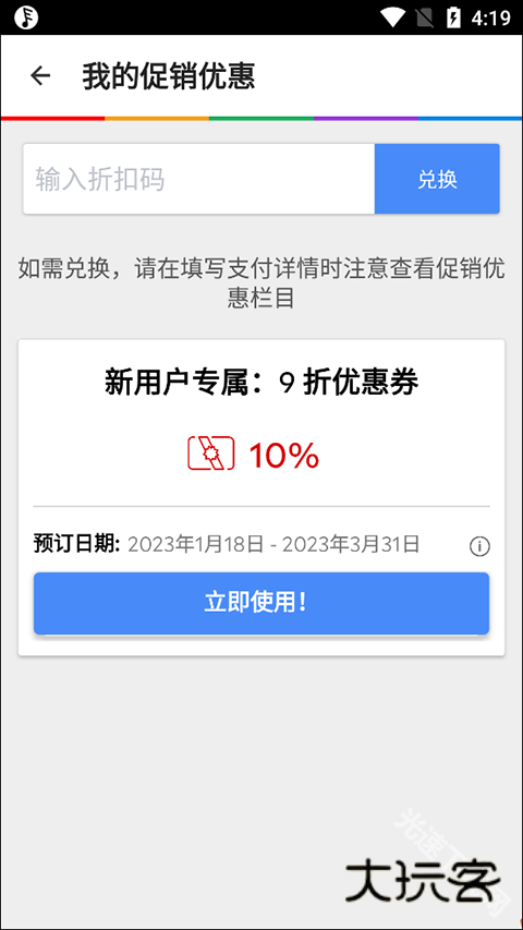 3、进去之后看到一个输入框,这时候咱们输入自己的优惠券折扣码,然后点击右边的“兑换”即可,或者是选择下面的优惠券进行使用即可。