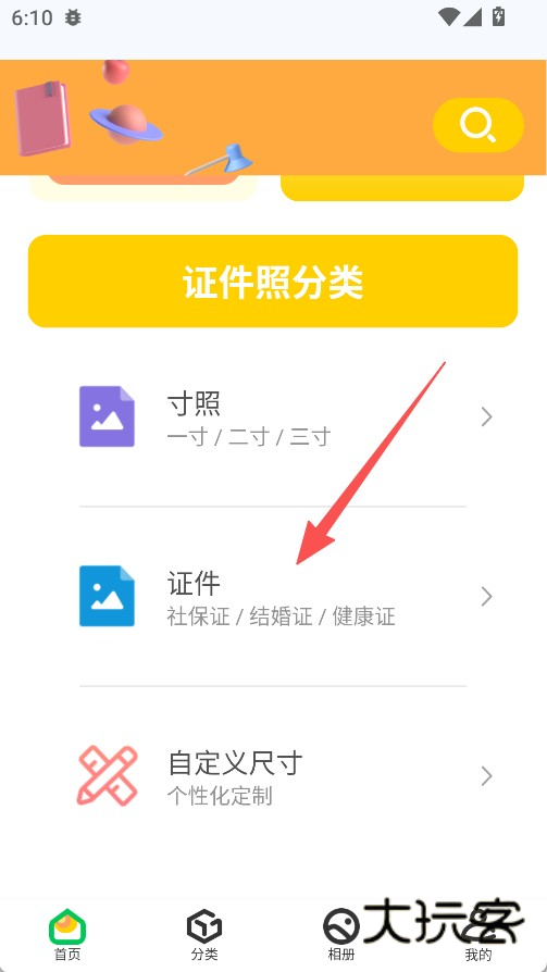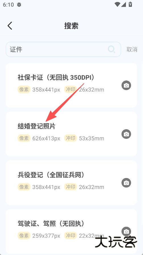 进入相应的分类后,可以找到特定类型的身份证照片,如结婚登记照片。选择完成后,您可以直接拍照,也可以从相册中选择照片。