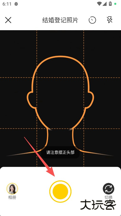 3、在拍摄界面,点击下方拍摄按钮,或从相册选图,完成证件照制作。