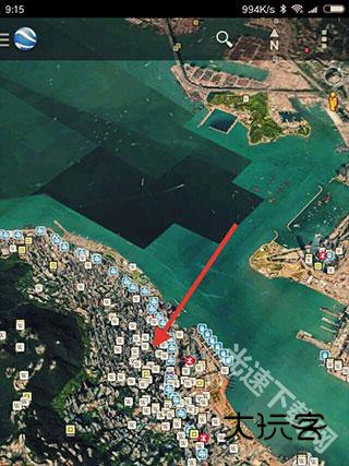 2、卫星地图:中国地图支持全球最新高清卫星地图,无限放大不模糊,连地面汽车都能看到,并具有地图制图、kml文件导入导出、风水罗盘、3D地形、实时路况等功能;