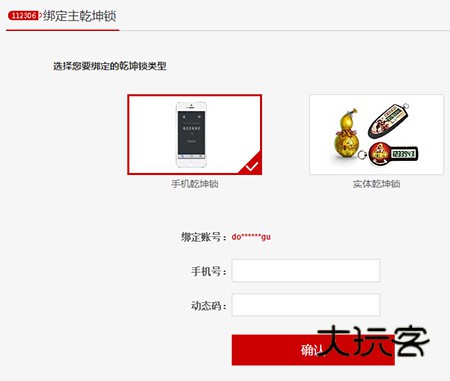 注:目前此方式只用于开启帐号的主乾坤锁。