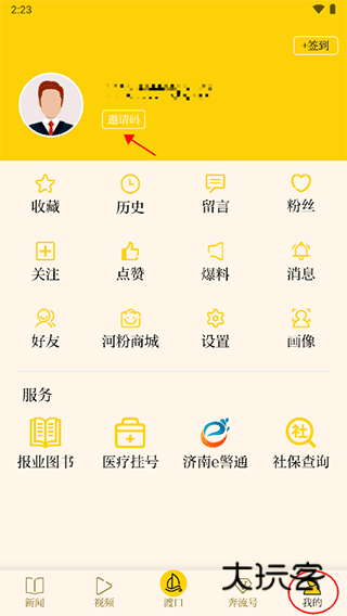 1、打开软件,在“我的”点击邀请码,进入到邀请码界面。