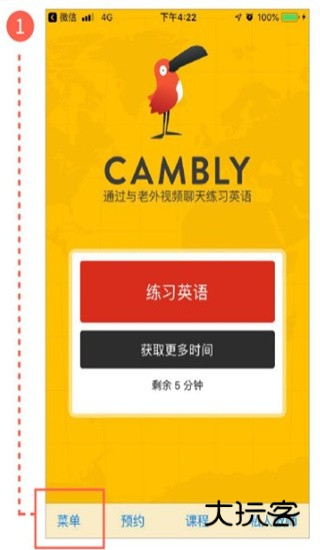 1、下载Cambly App,注册,选择菜单;