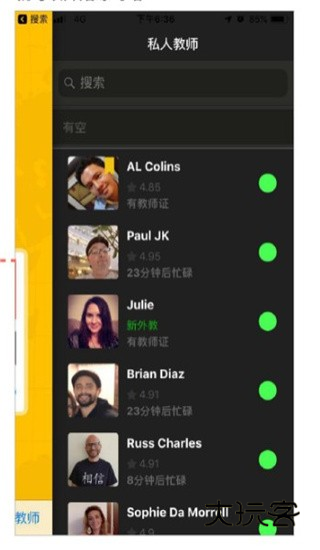 3、在私人教师页面选择外教,就可以开始练习咯~