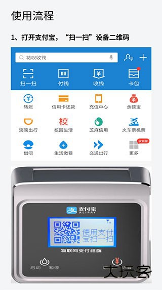 1、打开软件或者支付宝,点击“扫一扫”来扫描设备二维码。