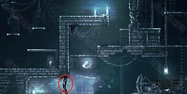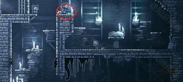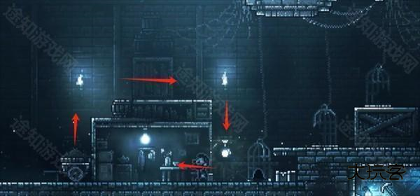12、爬上吊灯右边的平台,柱子会断裂,把之前推断的柱子推过来修复平台,从平台往左跳过去,获得钥匙。