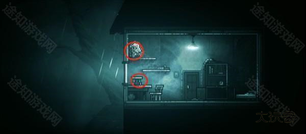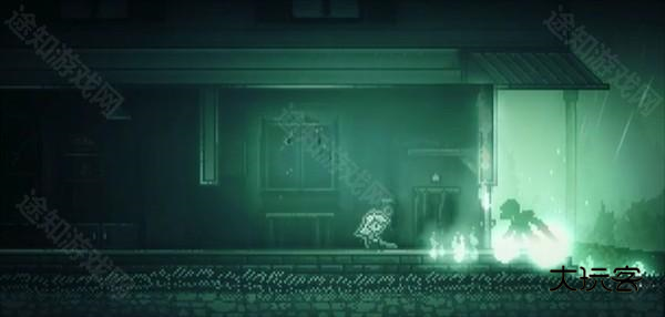 3、流浪者视角。往左走到房子前松动的木板上,站在木板上跳几次,破坏木板,从木板下的坑道爬进房子,获得镰刀。然后推开房门出去,砸死门外的黑色怪物。