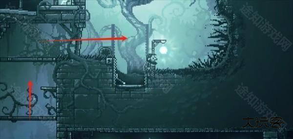 4、往右走,砍断挡路的藤蔓,继续往右,进入城堡后往右下的火盆方向走下去。
