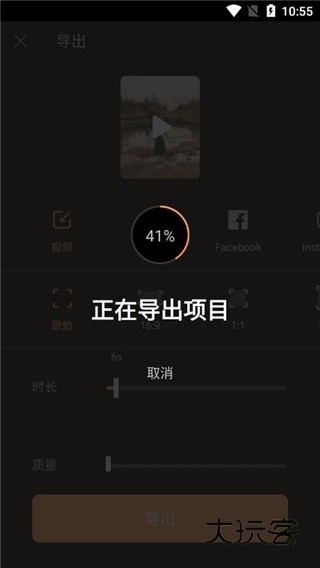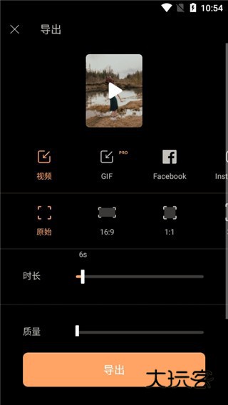 1、首先点击右上角的导出功能来到导出的页面,然后再这里选择一个视频,还可以选择导出视频的时长、质量和画面比例