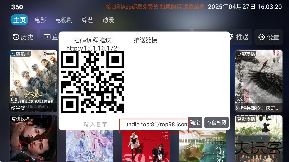 3、输入推送链接:https://www.饭太硬.com/tv/
