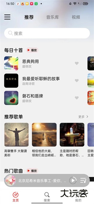 1、里面有很多音乐可以收听,主打的是一些赞美的诗歌音乐;