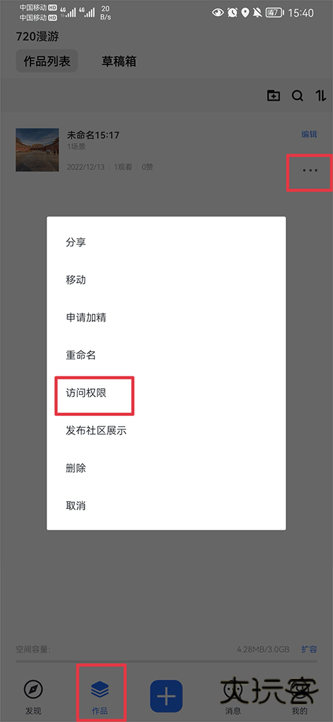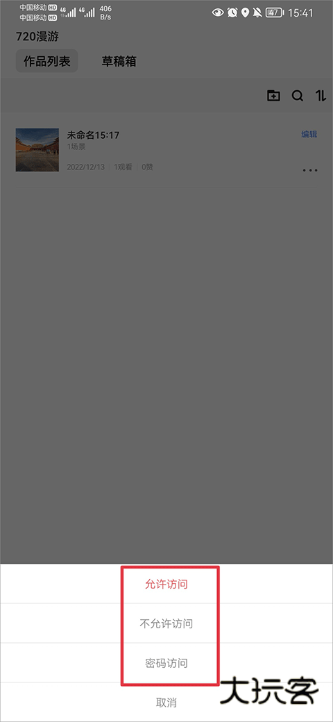 1、在查看制作完成的全景图的时候,用户通过点击作品右边的三点,可以为作品设置访问权限