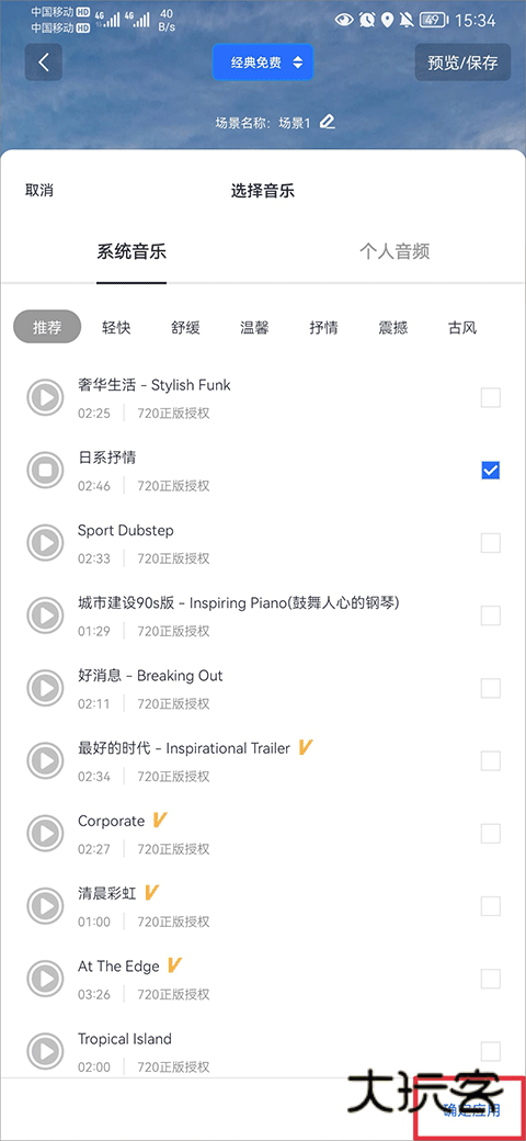 5、最后点击预览/保存后,在预览界面中可以听到已添加的音乐