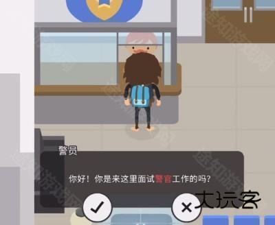 2、之后就需要与警察局的前台进行对话,在【你是来里面试警察工作的吗】,之后选择是。