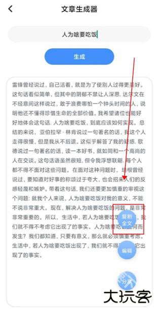 3、然后你需要的文章就或自动生成出来,点击旁边的复制全文即可一键复制