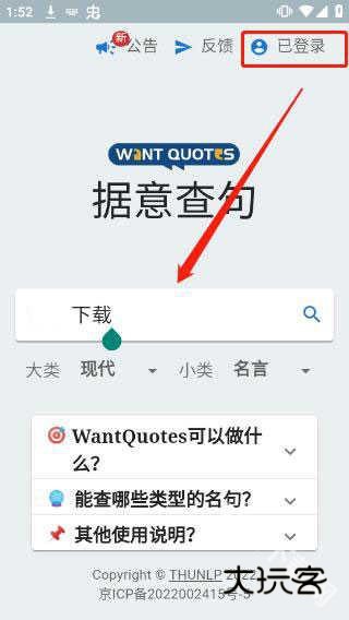 据意查句是一款备受好评的语句查询应用。这款应用不仅拥有着海量的经典名句供用户去搜索,同时还有着智能的大数据算法搜素功能,让用户能够快速查找到相关语句。想要查询各种名言名句的话就快来下载吧。